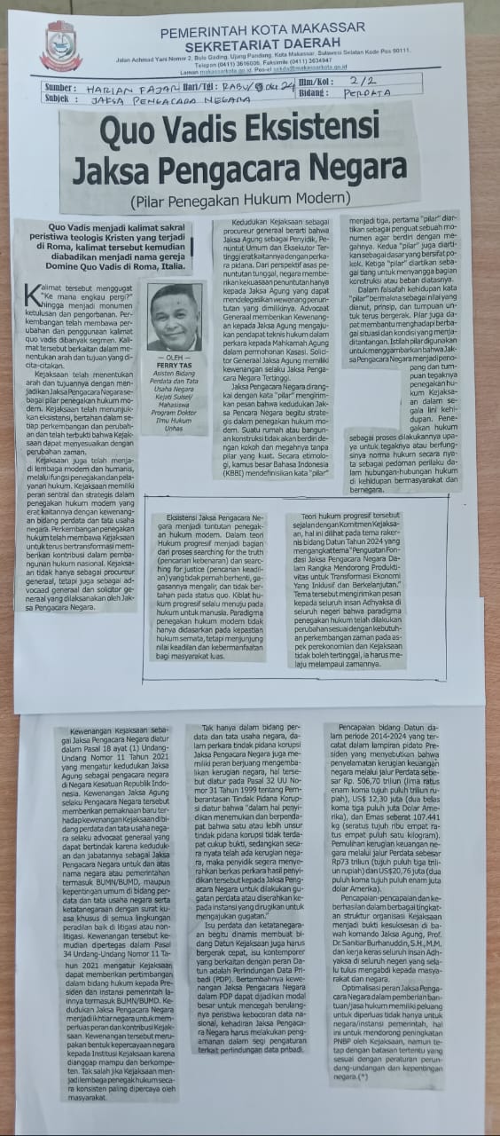 JudulQuo Vadis Eksistensi Jaksa Pengacara Negara