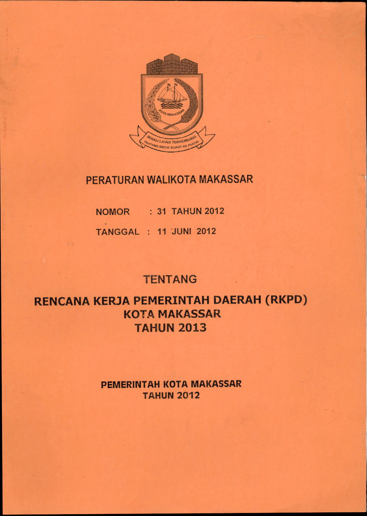 Peraturan Walikota Makassar Tentang Rencana Kerja Pemerintah Daerah (RKPD) Kota Makassar Tahun 2013