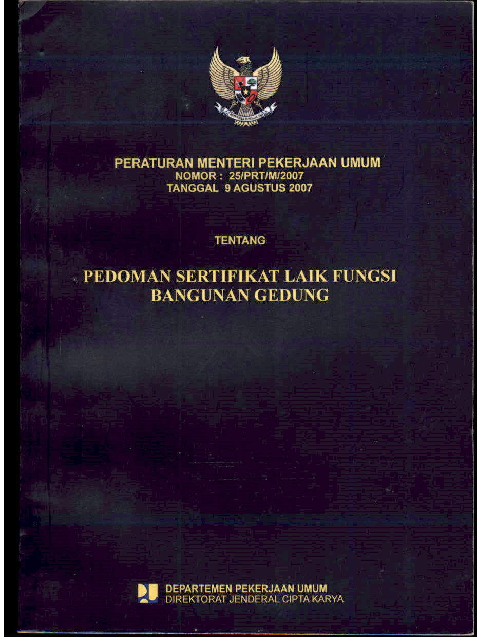 Peraturan Menteri Pekerjaan Umum Nomor : 25/prt/m/2007 Tentang Pedoman Sertifikat Laik Fungsi Bangunan Gedung
