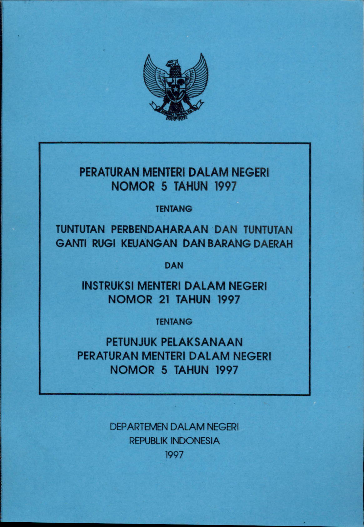 Peraturan Menteri Dalam Negeri Nomor 5 Tahun 1997 Tentang Tuntutan Perbendaharaan Dan Tuntutan Ganti Rugi Keuangan Dan Barang Daerah Dan Instruksi Menteri Dalam Negeri Nomor 21 Tahun 1997 Tentang Petunjuk Pelaksanaan Peraturan Menetri Dalam Negeri Nomor 5 Tahun 1997