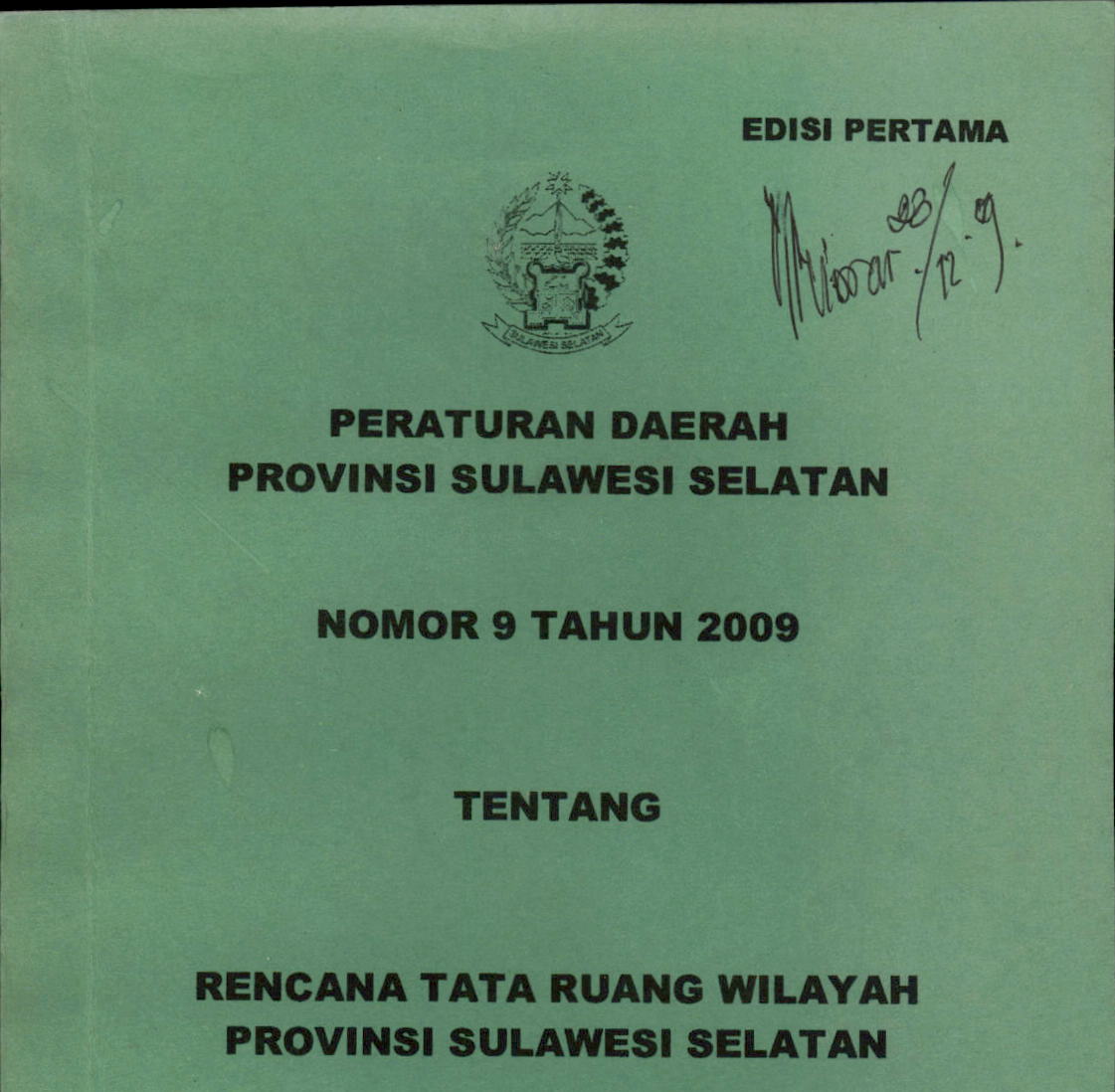 Peraturan Daerah Provinsi Sulawesi Selatan Nomor 9 Tahun 2009 Tentang Rencana Tata Ruang Wilayah Provinsi Sulawesi Selatan