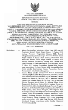 Keputusan Walikota Makassar Nomor 1769 Tahun 2025 Tentang Penetapan Nilai Wajar Barang Milik Daerah Yang Bersumber Dari Penyerahan Prasarana, Sarana Dan Utilitas Perumahan Citraland City Cpi Makassar Cluster Sunset Cove (Tahap II), Citraland City CPI Makassar Cluster Sunset Cove Delapan (Tahap I), Citraland City CPI Makassar Cluster Treasure Island (Tahap II, Sakura Village, Greenhasanuddin Residence, Golden Hill, Perumahan Dosen Dan Karyawan UMI, Mitra Mas Indah, Beringin Permai, Ranggoon Residence, Al Marhamah Depag, Grahajanna Land II, Taman Widya Graha, Griya Astra Manggala, Btn Angkasa Pura Sudiang (Laikang), Btn Angkasa Pura Sudiang (Pai), Oriya Telkom, Graha Mulia Bontoloe, Nugraha Residence, Taman Bunga 2 Sudiang, Moriesya Anugerah, Serta Perumahan Grand Property Tahun Anggaran 2025