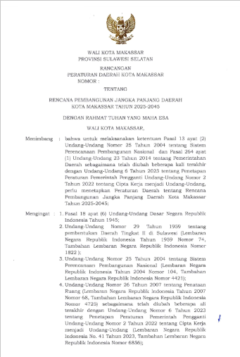 Rancangan Peraturan Daerah Kota Makassar Tentang Rencana Pembangunan Jangka Panjang Daerah Kota Makassar Tahun 2025-2045