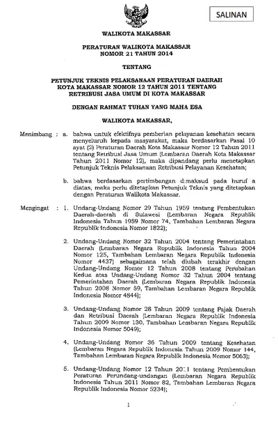 Peraturan Walikota Makassar Nomor 21 Tahun 2014 Tentang Petunjuk Teknis Pelaksanaan Peraturan Daerah Kota Makassar Nomor 12 Tahun 2011 Tentang .............