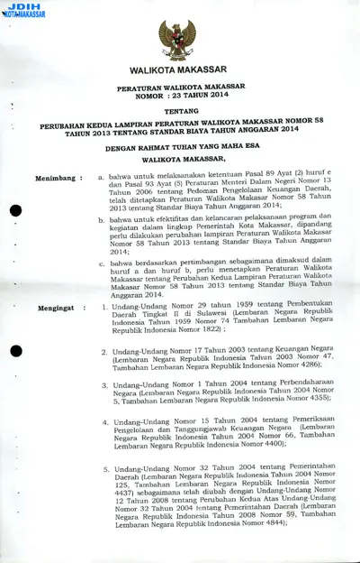 Peraturan Walikota Makassar Nomor 23 Tahun 2014 Tentang Perubahan Kedua Lampiran Peraturan Walikota Makassar Nomor 58 Tahun 2013 Tentang Standar .............