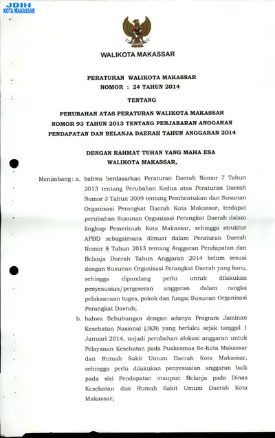 Peraturan Walikota Makassar Nomor 24 Tahun 2014 Tentang Perubahan Atas Peraturan Walikota Makassar Nomor 93 Tahun 2013 Tentang Penjabaran Anggaran .............
