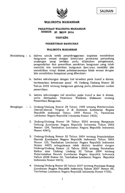 Peraturan Walikota Makassar Nomor 25 Tahun 2014 Tentang Penertiban Bangunan