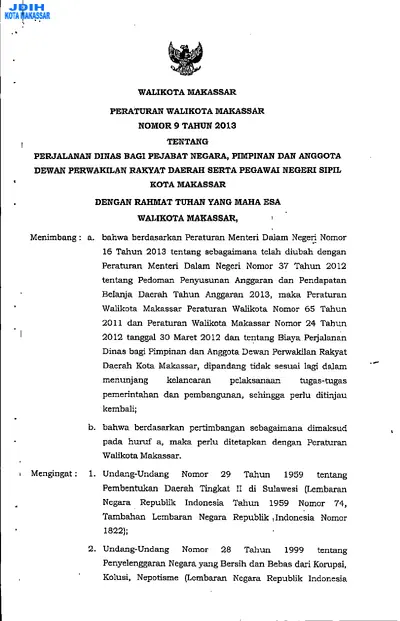 Peraturan Walikota Makassar Nomor 9 Tahun 2013 Tentang Perjalanan Dinas Bagi Pejabat Negara, Pimpinan Dan Anggota Dewan Perwakilan Rakyat Daerah .............