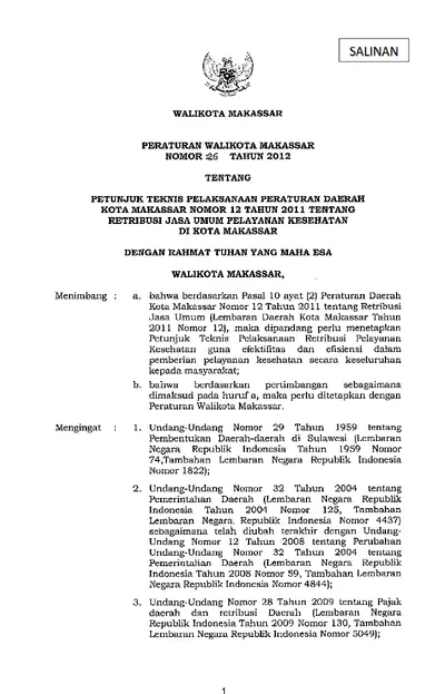 Peraturan Walikota Makassar Nomor 26 Tahun 2012 Tentang Petunjuk Teknis Pelaksanaan Peraturan Daerah Kota Makassar Nomor 12 Tahun 2011 Tentang .............