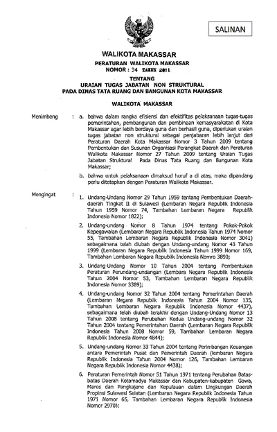 Peraturan Walikota Makassar Nomor 34 Tahun 2011 Tentang Uraian Tugas Jabatan Non Struktural Pada Dinas Tata Ruang Dan Bangunan Kota Makassar