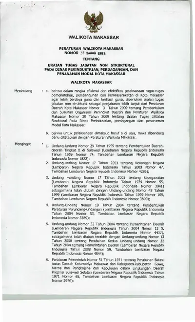 Peraturan Walikota Makassar Nomor 35 Tahun 2011 Tentang Uraian Tugas Jabatan Non Struktural Pada Dinas Perindustrian, Perdagangan, Dan Penanaman .............