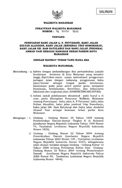 Peraturan Wali Kota Makassar Nomor 64 Tahun 2011 Tentang Penetapan Bahu Jalan A. P. Pettarani, Bahu Jalan Sultan Alauddin, Bahu Jalan Jenderal Urip .............