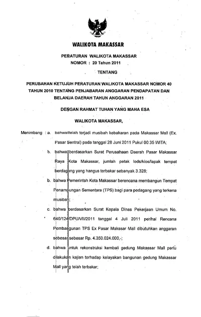 Peraturan Wali Kota Makassar Nomor 20 Tahun 2011 Tentang Perubahan Ketujuh Peraturan Wali Kota Makassar Nomor 40 Tahun 2010 Tentang Penjabaran .............