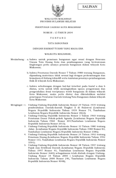 Peraturan Daerah Kota Makassar Nomor 15 Tahun 2004 Tentang Tata Bangunan