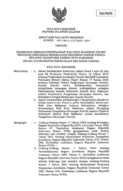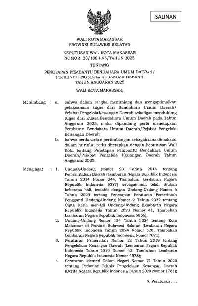 Keputusan Walikota Makassar Nomor 23/188.4.45/tahun 2025 Tentang Penetapan Pembantu Bendahara Umum Daerah/pejabat Pengelola Keuangan Daerah Tahun .............
