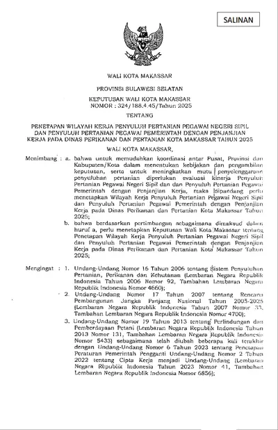 Keputusan Wali Kota Makassar Nomor 324 Tahun 2025 Tentang Penetapan Wilayah Kerja Penyuluh Pertanian Pegawai Negeri Sipil dan Penyuluh Pertanian .............