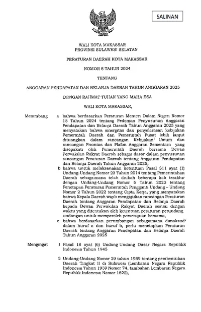 Peraturan Daerah Kota Makassar Nomor 8 Tahun 2024 Tentang Anggaran Pendapatan Dan Belanja Daerah Tahun Anggaran 2025