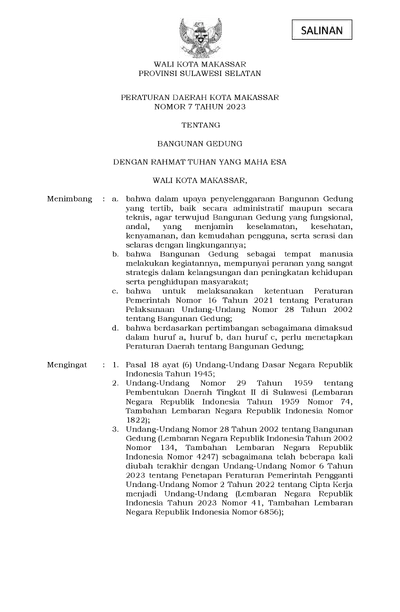 Peraturan Daerah Kota Makassar Nomor 7 Tahun 2023 Tentang Bangunan Gedung