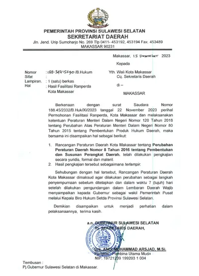 Hasil Fasilitasi Ranperda Kota Makassar Tentang Perubahan Atas Peraturan Daerah Nomor 8 Tahun 2016 Tentang Pembentukan Dan Susunan Perangkat Daerah