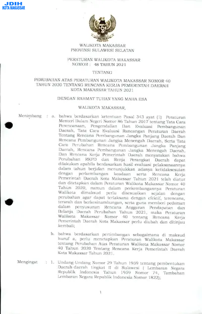 Peraturan Walikota Makassar Nomor 48 Tahun 2021 Tentang Perubahan Atas Peraturan Walikota Makassar Nomor 40 Tahun 2020 Tentang Rencana Kerja .............