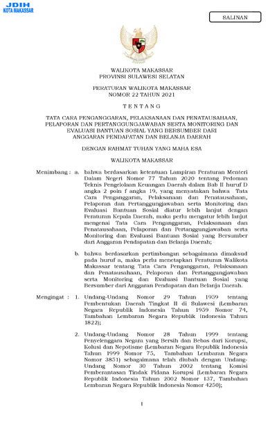 Peraturan Walikota Makassar Nomor 22 Tahun 2021 Tentang Tata Cara Penganggaran, Pelaksanaan Dan Penatausahaan, Pelaporan Dan Pertanggungjawaban Serta .............