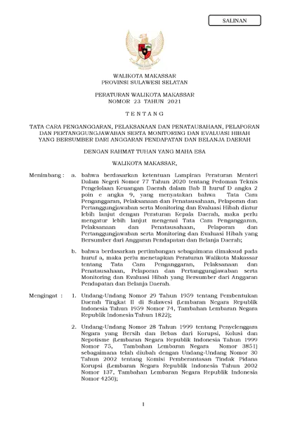 Peraturan Walikota Makassar Nomor 23 Tahun 2021 Tentang Tata Cara Penganggaran, Pelaksanaan Dan Penatausahaan, Pelaporan Dan Pertanggungjawaban Serta .............