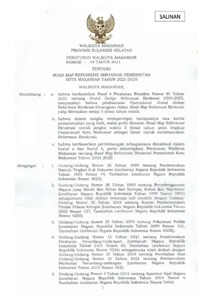 Peraturan Walikota Makassar Nomor 24 Tahun 2021 Tentang Road Map Reformasi Birokrasi Pemerintah Kota Makassar Tahun 2021 - 2025