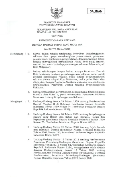 Peraturan Walikota Makassar Nomor 42 Tahun 2020 Tentang Penyelenggaraan Reklame