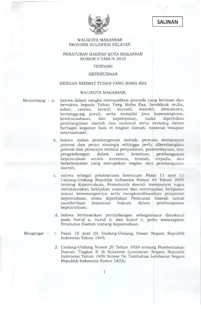 Peraturan Daerah Kota Makassar Nomor 6 Tahun 2019 Tentang Kepemudaan