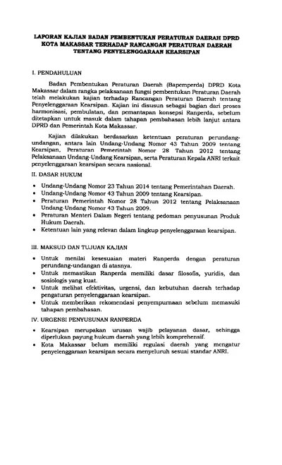 Laporan Kajian Badan Pembentukan Peraturan Daerah Dprd Kota Makassar Terhadap Rancangan Peraturan Daerah Tentang Penyelenggaraan Kearsipan