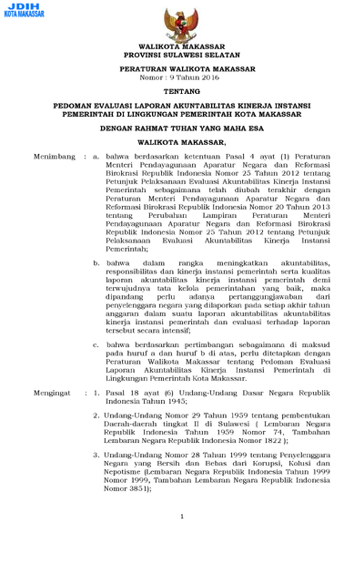 Peraturan Walikota Makassar Nomor 9 Tahun 2016 Tentang Pedoman Evaluasi Laporan Akuntabilitas Kinerja Instansi Pemerintah Di Lingkungan Pemerintah .............