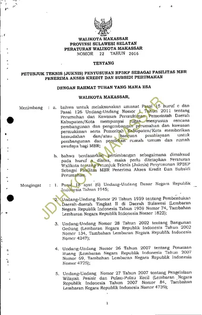 Peraturan Walikota Makassar Nomor 22 Tahun 2016 Tentang Petunjuk Teknis (juknis) Penyusunan RP3KP Sebagai Fasilitas MBR Penerima Akses Kredit Dan .............