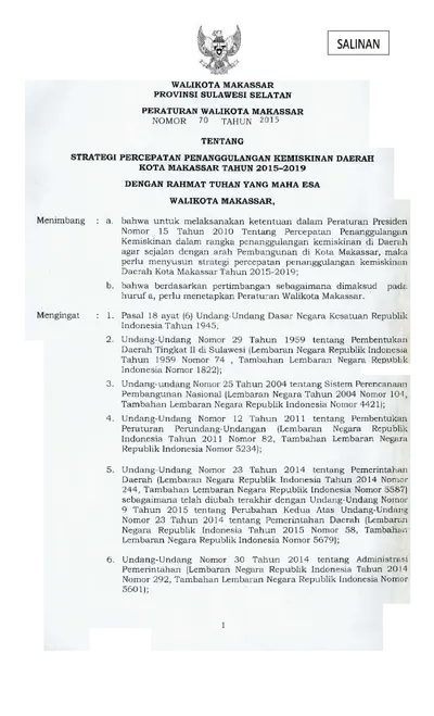 Peraturan Walikota Makassar Nomor 70 Tahun 2015 Tentang Strategi Percepatan Penanggulangan Kemiskinan Daerah Kota Makassar Tahun 2015-2019