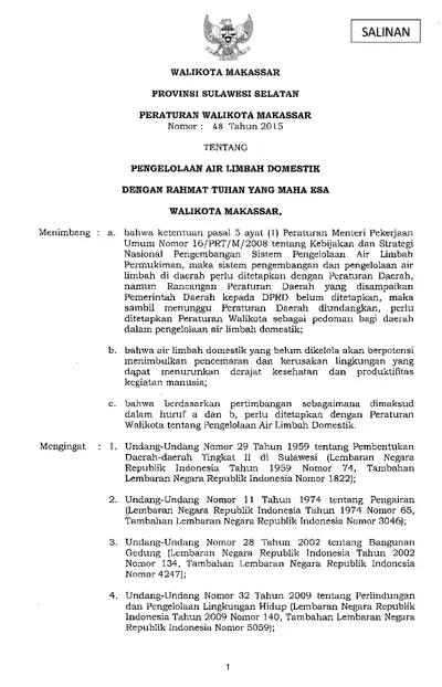 Peraturan Walikota Makassar Nomor 48 Tahun 2015 Tentang Pengelolaan Air Limbah Domestik