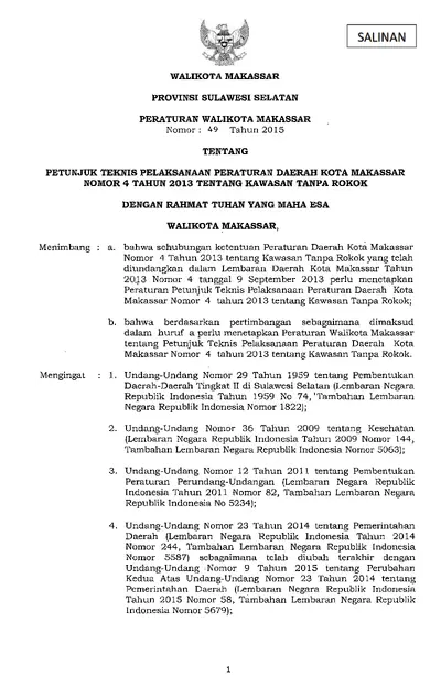 Peraturan Walikota Makassar Nomor 49 Tahun 2015 Tentang Petunjuk Teknis Pelaksanaan Peraturan Daerah Kota Makassar Nomor 4 Tahun 2013 Tentang Kawasan .............