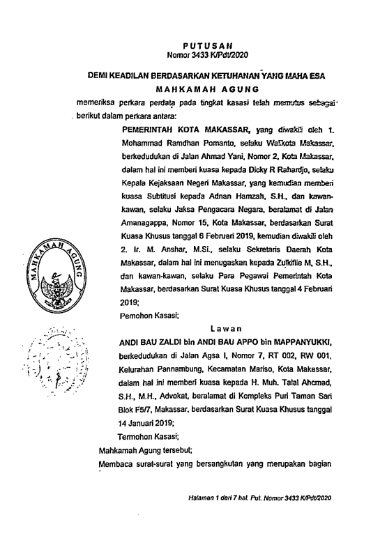 Putusan Mahkamah Agung Nomor 3433 K/Pdt/2020