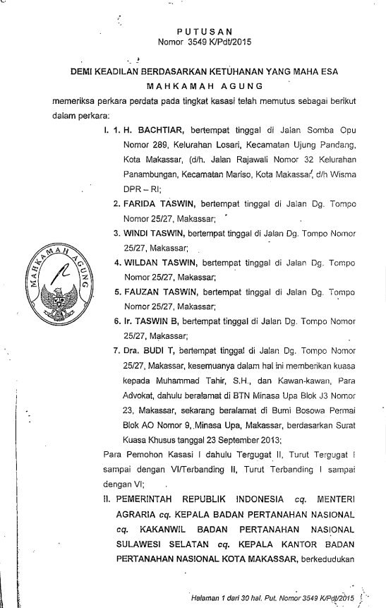Putusan Mahkamah Agung Nomor 3549 K/pdt/2015
