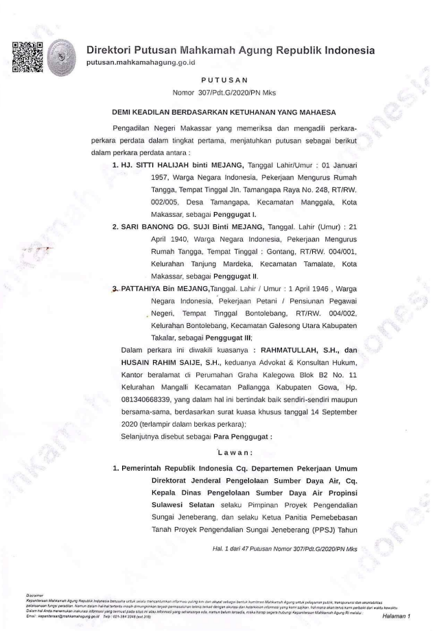 Putusan Pangadilan Negeri Nomor 307/Pdt.G/2020/PN.Mks