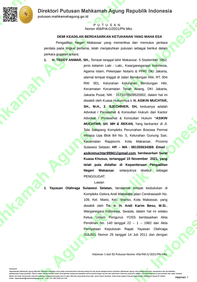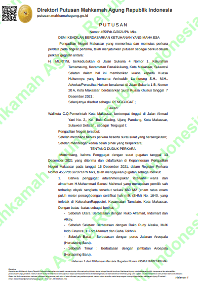 Putusan Pengadilan Negeri Makassar Nomor 455/Pdt.G/2021/PN Mks