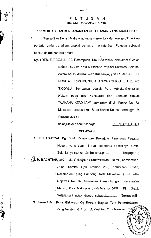 Putusan Pengadilan Negeri Makassar Nomor 232/Pdt.G/2013/PN.Mks