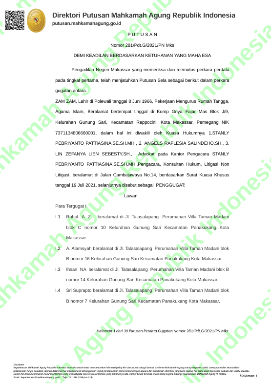 Putusan Pengadilan Negeri Makassar Nomor 281/PDT.G/2021/PN.Mks